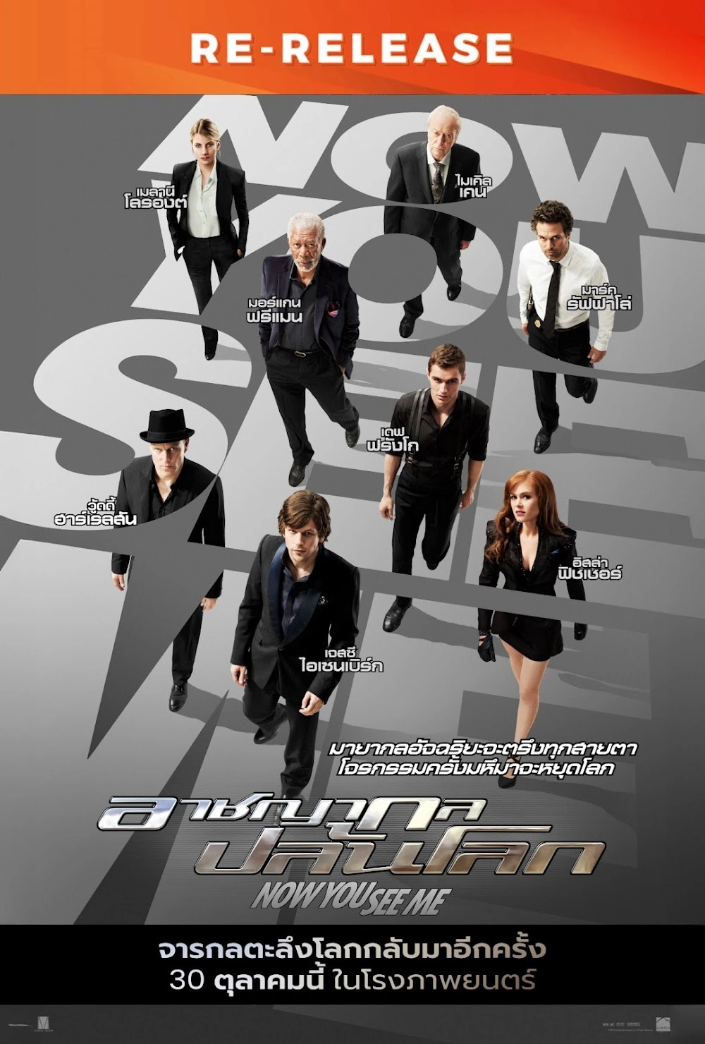 "storyline": "4 นักมายากลฝีมือดี, 3 การโจรกรรมที่เป็นไปไม่ได้, 1 พันล้านดอลล่าร์... เชื่อเถอะว่านี่ไม่ใช่ภาพลวงตา!\n\nNow You See Me เป็นเรื่องราวของทีมนักมายากล ที่ไม่เพียงแต่ทำให้ผู้ชมทึ่งกับกลต่างๆ พวกเขายังสร้างชื่อจากการโจรกรรมไประหว่างที่ทำการแสดงทุกครั้ง ทำให้ทีมเจ้าหน้าที่เอฟบีไอต้องพยายามทำทุกอย่าง เพื่อที่จะจับตัวพวกเขาให้ได้แบบคาหนังคาเขา"