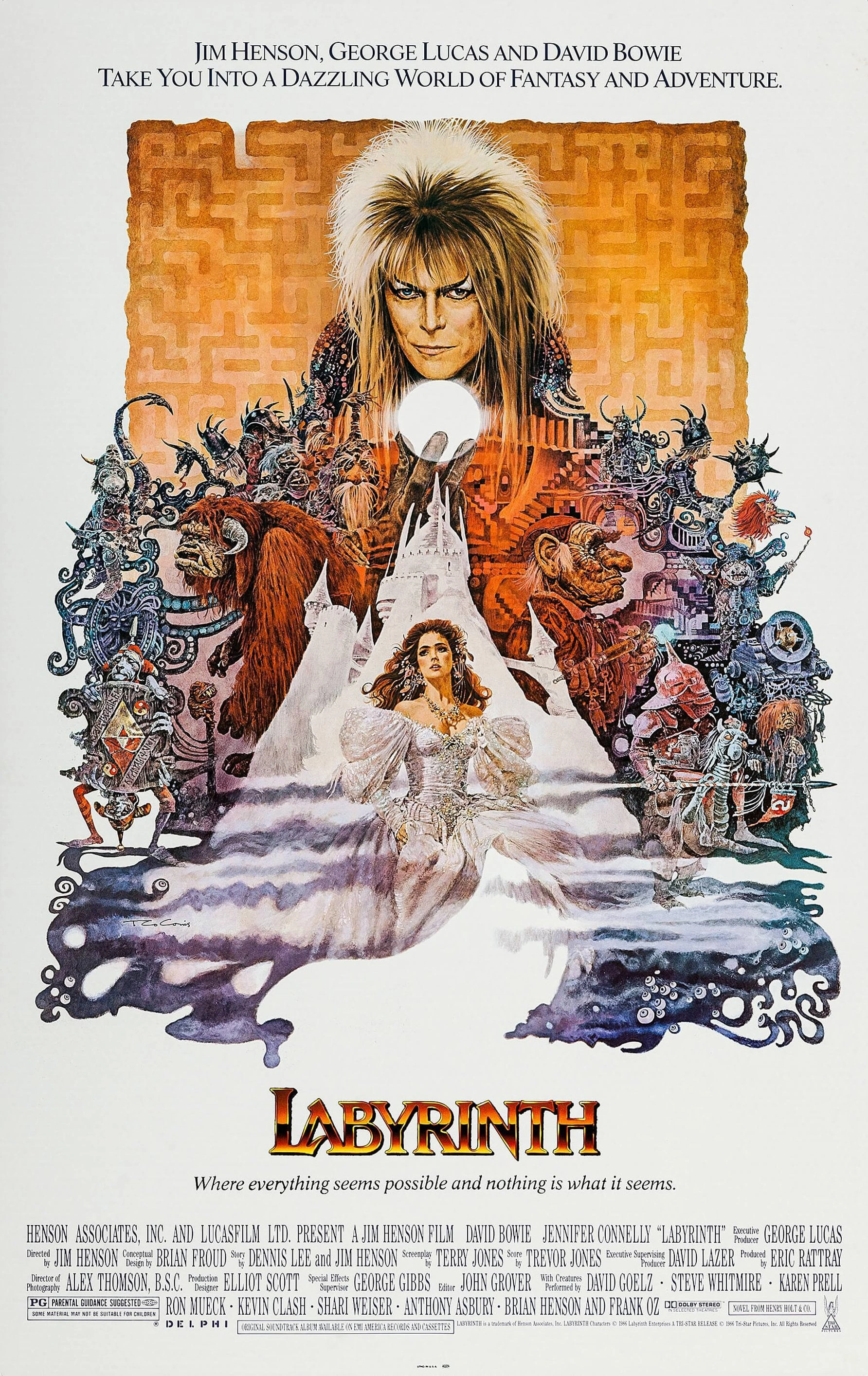 "cast": "Jennifer Connelly, David Bowie, Toby Froud, Shelley Thompson, Christopher Malcolm, Natalie Finland, Warwick Davis, Brian Henson, Ron Mueck",