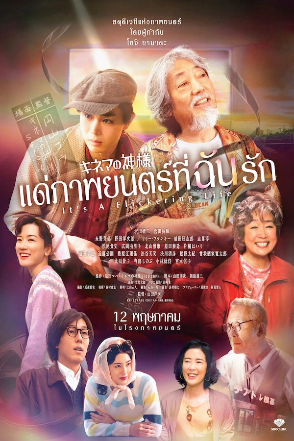 "storyline": "JA (EN & TH Subs) โก (มาซากิ สุดะ) ผู้ใช้ทุกวันเวลาไล่ตามความฝัน ซึ่งชีวิตของเขาถูกห้อมล้อมไปด้วยนักแสดงและผู้กำกับชื่อดังในช่วงยุคทองของวงการภาพยนตร์ญี่ปุ่น จนกระทั่งเขาได้ตกหลุมรักกับ โยชิโกะ (เมอิ นากาโนะ) ลูกสาวเจ้าของร้านอาหารและมันทำให้โกค่อยๆ ได้เรียนรู้เกี่ยวกับความรักอันเป็นนิรันดร์ ไปพร้อมกับกงล้อแห่งชีวิตที่เชื่อมโยงไปถึง \"เทพเจ้าแห่งภาพยนตร์\" ที่จะกลายมาเป็นความมหัศจรรย์ในชีวิตโดยที่เขาเองก็ไม่รู้ตัว"