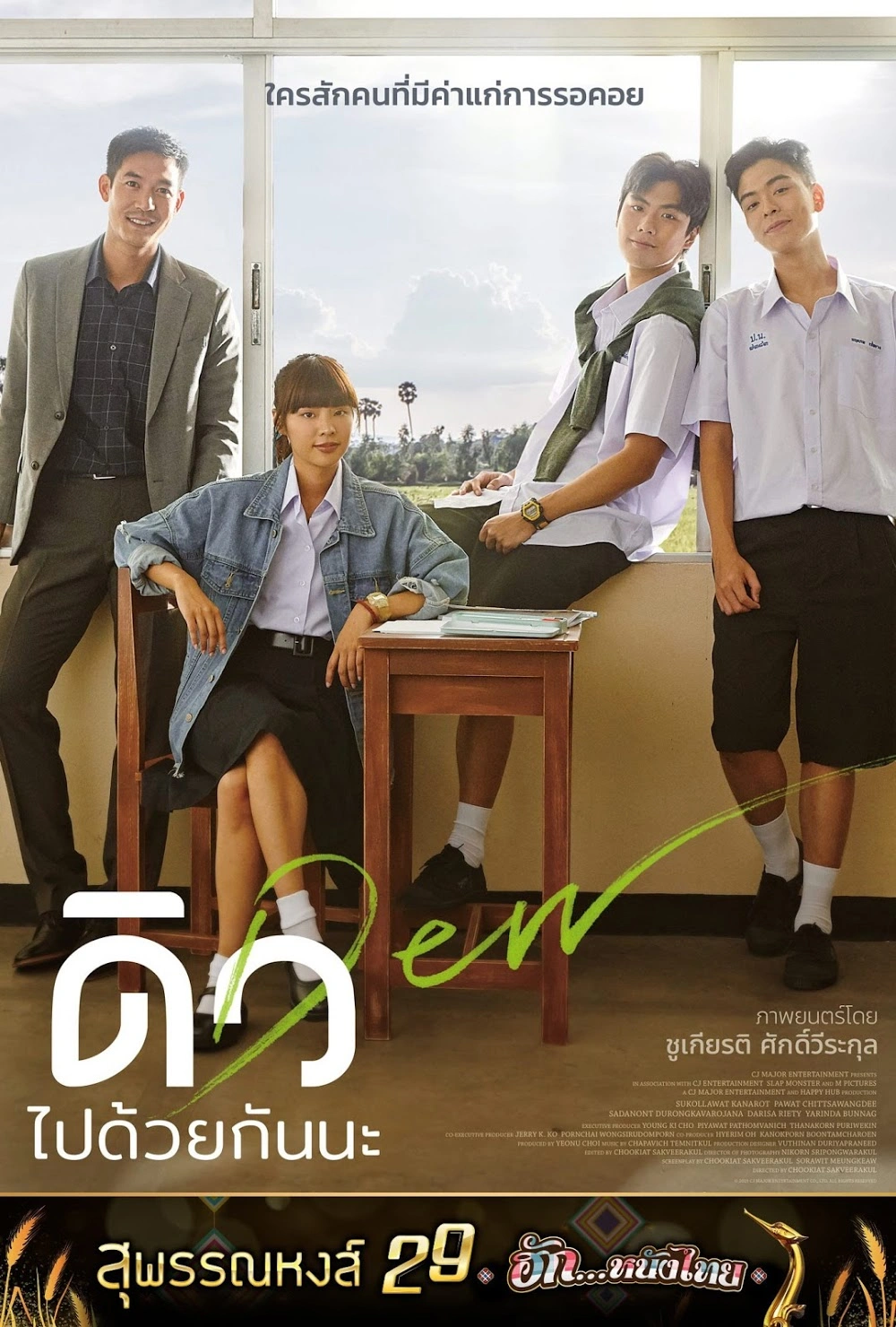 "storyline": "DEW เป็นภาพยนตร์แนว โรแมนติก-ดราม่า ว่าด้วย \"ถ้าคุณมีโอกาสครั้งที่สองในการแก้ไขสิ่งที่เคยทำผิดกับคนที่คุณรัก คุณจะกลับไปเปลี่ยนแปลงมัน หรือจะปล่อยมันไป\" \nหลังจากล้มเหลวจากการทำธุรกิจส่วนตัว “ภพ” ชายอายุ 37 ปี จำเป็นต้องย้ายกลับไปที่บ้านเกิดของเขาที่ 'ปางน้อย' กับ “อร” ภรรยาผู้แสนดีที่คอยช่วยเหลือเขาเสมอ กว่า 20 ปี ที่ต้องไปเรียนต่างเมืองเพราะไม่สามารถขัดขืนคำสั่งของพ่อแม่ตัวเองที่มีภูมิหลังแบบจีนอันแสนเข้มงวดได้ การกลับมาที่ปางน้อยครั้งนี้ “ภพ” เริ่มต้นชีวิตใหม่ด้วยการทำงานเป็นครูในโรงเรียนที่เขาเคยเรียนมาก่อน แต่ความทรงจำเก่าๆ จากเมื่อตอนวัยรุ่นที่ลืมไปนานแล้วก็ได้หวนกลับมาสู่ความคิดและความรู้สึกของเขาอย่างช้า ๆ โดยเฉพาะความทรงจำเกี่ยวกับอดีตคนรักที่กลับมาทำให้เขาคิดถึงอีกครั้ง ณ ปางน้อยแห่งนี้ \nเวียร์ ศุกลวัฒน์ คณารศ รับบทนำร่วมด้วย ญารินดา บุนนาค และทีมนักแสดงวัยรุ่น โอม ภวัต จิตต์สว่างดี จากซีรีส์ \"เขามาเชงเม้งข้างๆหลุมผมครับ\" ที่กำลังมาแรง และ นนท์ ศดานนท์ ดุรงคเวโรจน์ , กาฟิวส์ พันธุ์ธัช กันคำ และ ปั๋น ดริสา การพจน์ ทีมนักแสดงหน้าใหม่น่าจับตา ที่จะเปิดตัวด้วยภาพยนตร์เรื่องนี้เป็นครั้งแรก ที่จะไม่พูดถึงไม่ได้คือการร่วมงานกับนักแสดงรุ่นคุณภาพอย่าง แจง วราพรรณ หงุ่ยตระกูล และ อุ๋ม อาภาศิริ นิติพล ที่จะมาร่วมประชันบทบาทดราม่าซึมลึกในครั้งนี้"