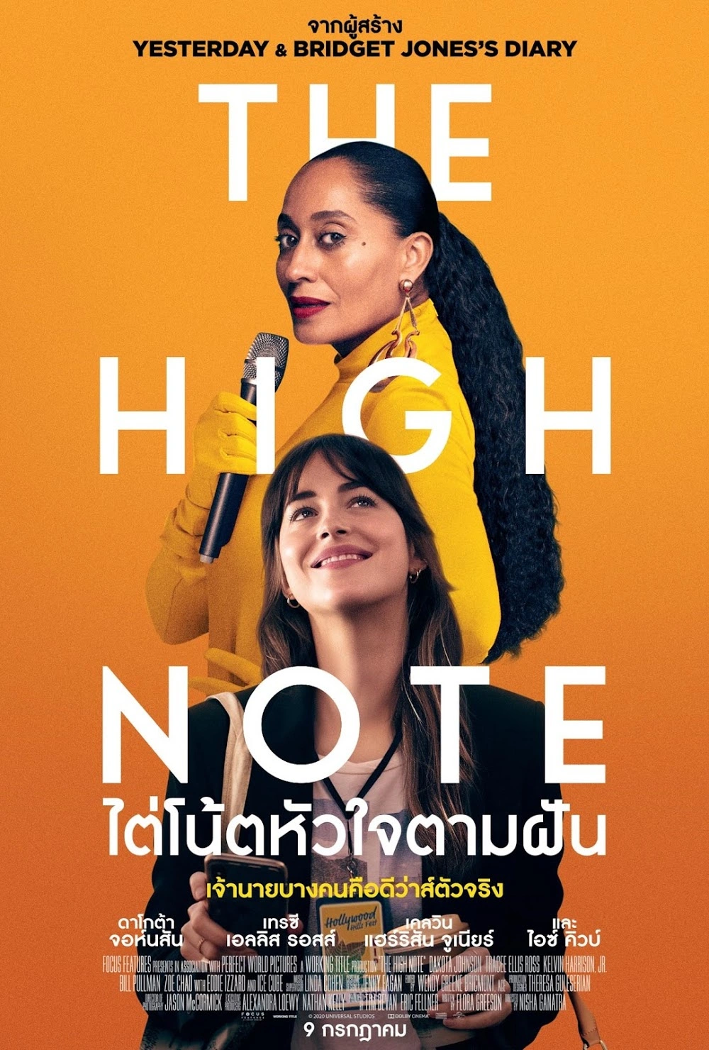 "storyline": "The High Note ภาพยนตร์ดราม่าคอมเมดี้ ผ่านฝีมือการกำกับของ Nisha Ganatra และเขียนบทภาพยนตร์โดย Flora Greeson นำแสดงโดย ดาโกต้า จอห์นสัน, เทรซี เอลลิส รอสส์, เคลวิน แฮร์ริสัน จูเนียร์, โซอี้ เชา, บิล พูลแมน, เอ็ดดี้ อิซซาร์ด และไอซ์ คิวบ์ เป็นเรื่องราวการตามติดชีวิตของผู้ช่วยส่วนตัวของศิลปินนักร้องชื่อดังที่ต้องการจะผันตัวกลายเป็นโปรดิวเซอร์เพลง"