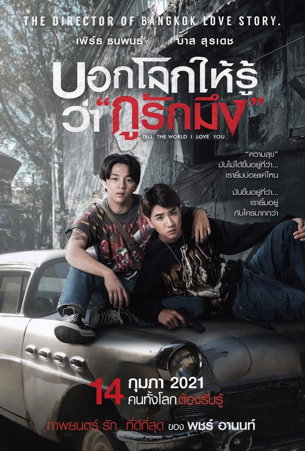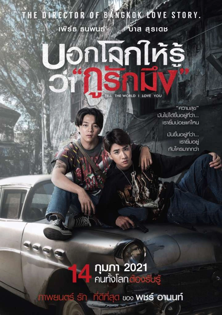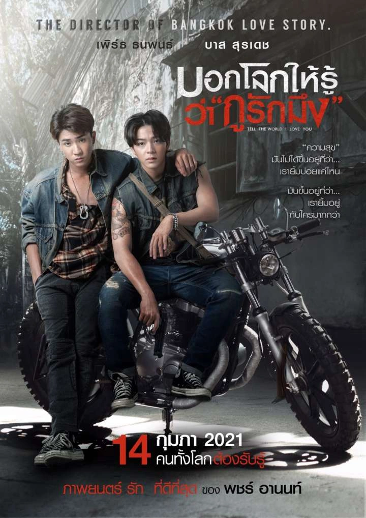 "storyline": "เข่ง (บาส - สุรเดช พินิวัตร์) เด็กหนุ่มจากต่างจังหวัดที่เข้ามาเรียนในกรุงเทพ และขออาศัยอยู่กับ ไท (เน็ต - สิรภพ มานิธิคุณ) เพื่อนร่วมชั้นในวัยเดียวกัน \n\nเข่งมีความฝันว่าอยากจะไปเรียนต่อที่ประเทศจีนเพื่อตามหาแม่ที่พลัดพรากกัน แต่ชีวิตของเขาเกิดพลิกผัน เมื่อบังเอิญเข้าไปช่วยเหลือ บ้ง (เพิร์ธ - ธนพนธ์ สุขุมพันธนาสาร) เด็กส่งยาที่กำลังถูกรุมทำร้ายจากกลุ่มนักเลงขาใหญ่ เฮียสง (สงกรานต์ - รังสรรค์ ปัญญาเรือน) และ นิก (นิก - คุณาธิป ปิ่นประดับ) \n\nจากนั้นมา พวกนักเลงก็ตามรังควาน เพราะเข้าใจว่าเข่งรวมหัวกันกับบ้งแอบซุกซ่อนยาเสพติดเอาไว้ เข่งจำเป็นต้องหนีออกจากบ้าน ไปหลบซ่อนอาศัยอยู่กับบ้งในที่ห่างไกล ทำให้ทั้งคู่ได้เรียนรู้ชีวิตของกันและกัน\n\nร่วมพิสูจน์เรื่องราวมิตรภาพความรักระหว่างเพื่อนที่จะเกิดขึ้นพร้อมกันใน “บอกโลกให้รู้ว่ากูรักมึง Tell The World I Love You” ฉายพร้อมกัน 27 มกราคมนี้ทุกโรงภาพยนตร์ทั่วประเทศ #บอกโลกให้รู้ว่ากูรักมึง #TellTheWorldILoveYou"