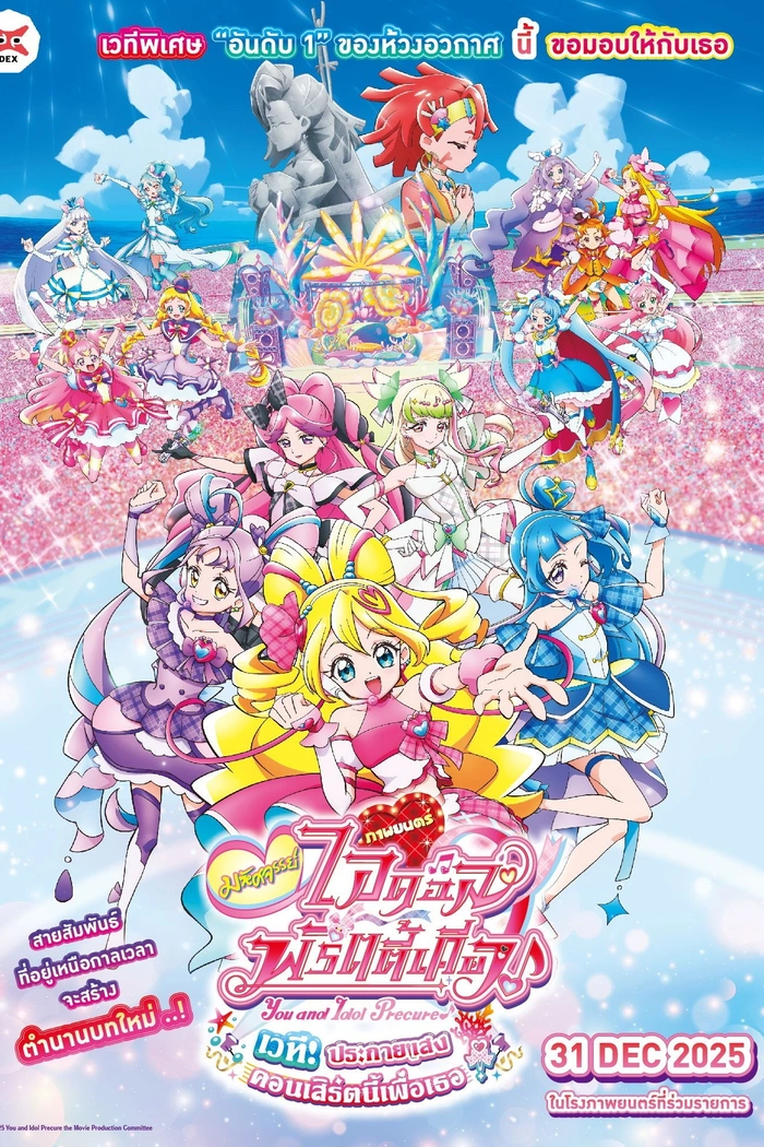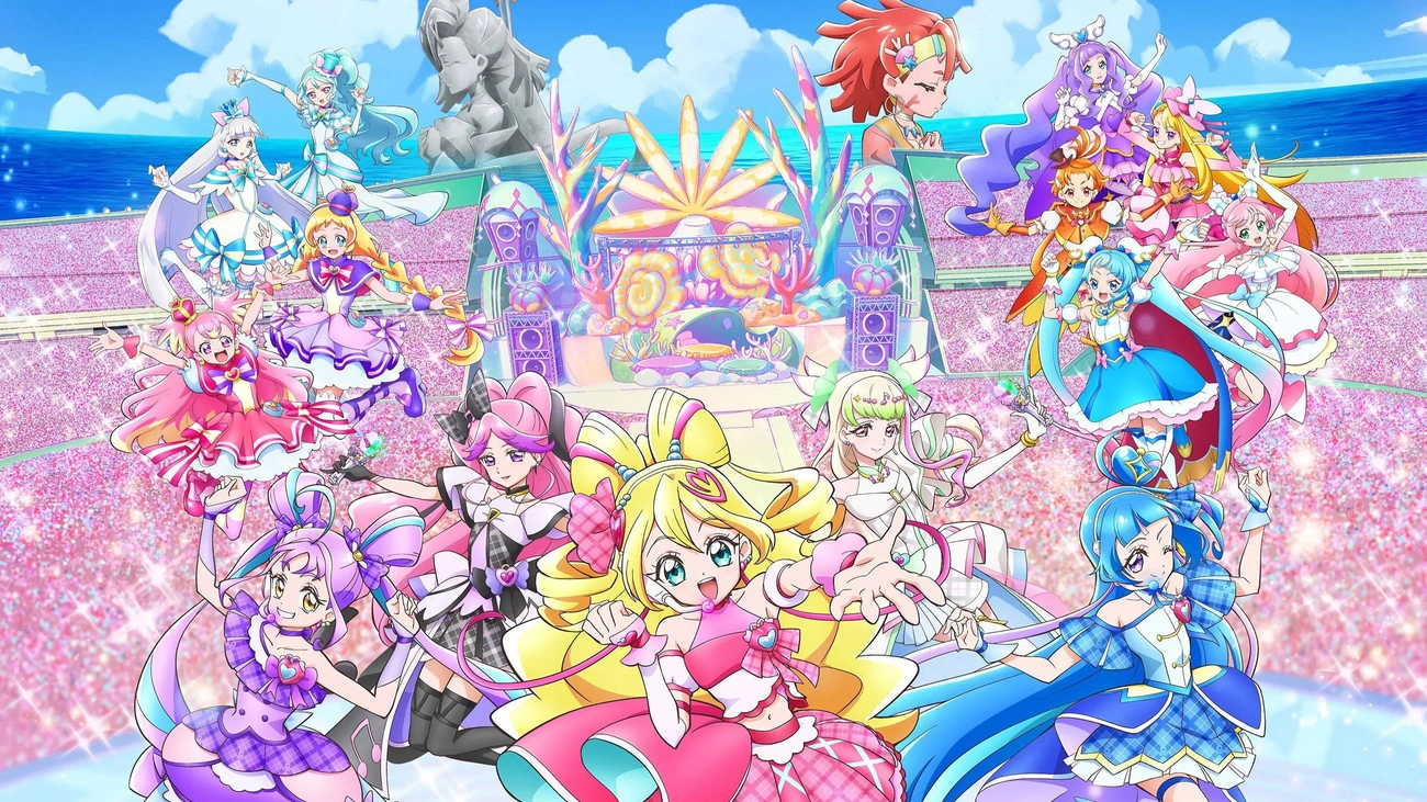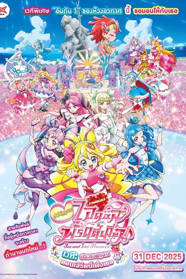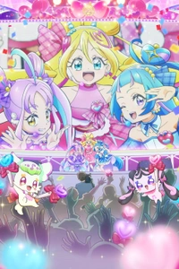 "You and Idol Precure♪" will appear at the "No.1 Universe" Idol Festival! What is the secret hidden on the mysterious island...? One day, Uta and her friends are invited by the coral fairy, Totto to appear in the "Super Miracle Idol Festival" held on a mysterious island called AiAi Island! In a hu~ge venue, many different idols, including robots and animals, gather♪ The biggest idol festival in the universe is about to begin! Or so they thought...? Suddenly, a mysterious monster appears, and AiAi Island and the world are caught up in a crisis... And what's more, they've been transported back in time!? The clue to saving them from this crisis is hidden in the legend of the island's goddess and the mysterious idol-hating girl Tera, whom they met on the island...? That's not all! "Wonderful Precure!" and "Soaring Sky! Precure" will also be rushing over to AiAi Island! C'mon! Sing, dance, and please the crowd - a kirakiLive concert is about to begin!☆